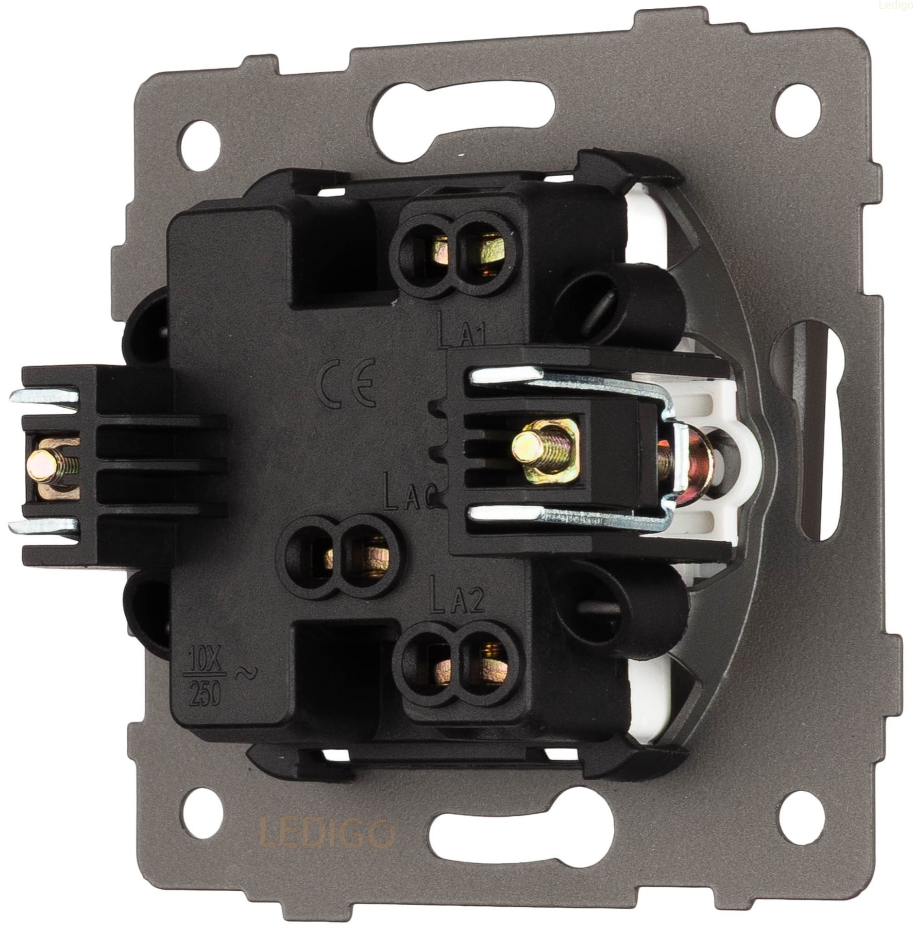 Mocowanie - włącznik wyposażony w pazurki oraz otwory na wkręty, co zapewnia stabilne osadzenie w puszce.