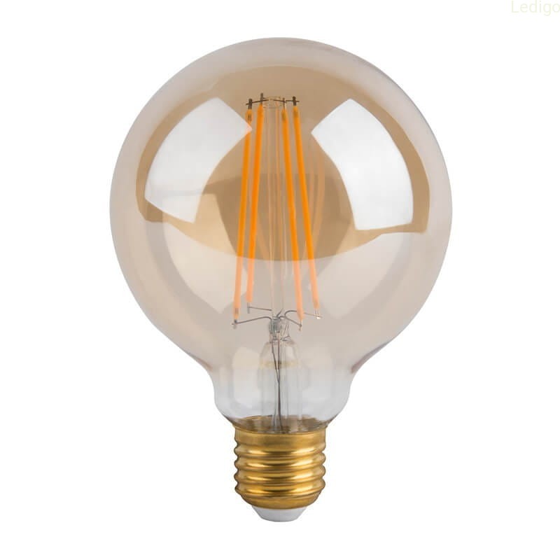 Żarówka dekoracyjna LED G80 amber glass stanowi doskonałą alternatywę dla tradycyjnych żarówek z tym samym trzonkiem.