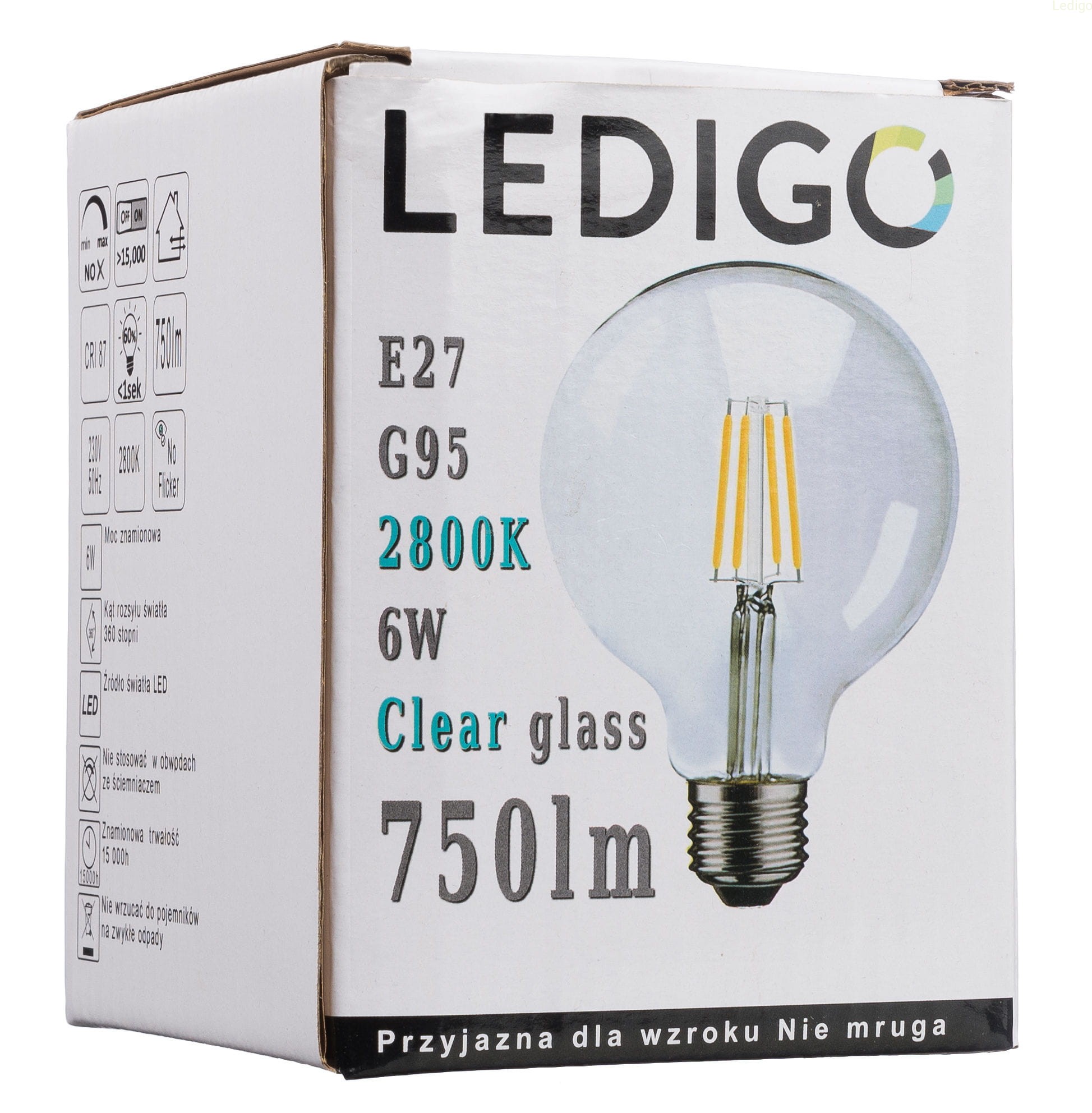 Żarówka E27 G95 FILAMENT 6W clear